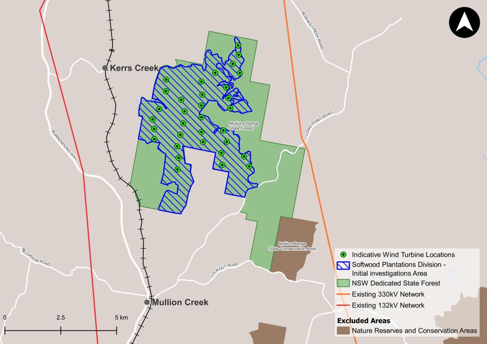 The Mullion Creek Wind Farm (the Project) is about 20 km north of Orange (NSW) on Wiradjuri country. If approved, it would be built in the Forestry Corporation of New South Wales’s (Forestry Corporation) Mullions Range softwood pine plantation, in Cabonne Shire Council and Dubbo Regional Council areas.